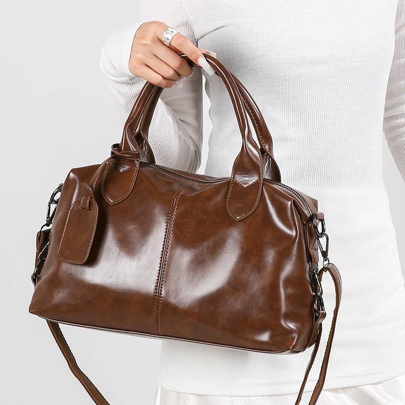 Retro Large-capacity Bag Fashionable Matte Boston Bag Hand-held Commuter Tote Bag