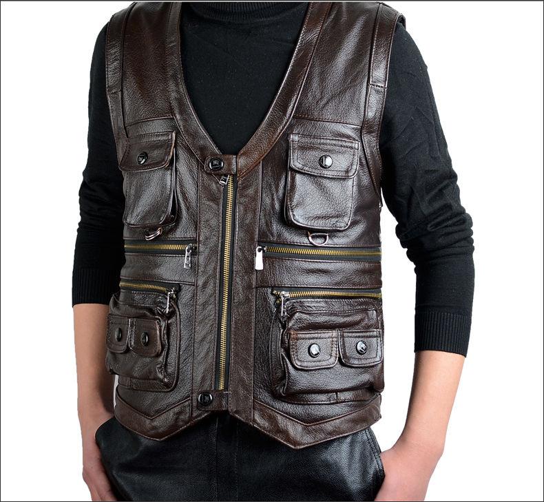 Vest for Men Cowhide Genuine Leather Vest Genuine Leather Cowhide Vest Men Autumn Vest