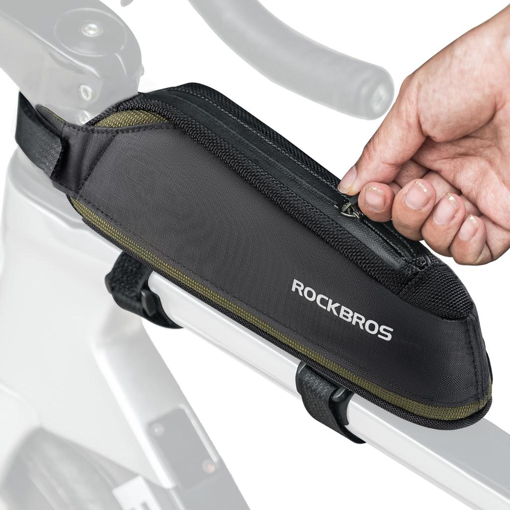 [More Details] 1. The top tube bag has a side strap that allows it to be removed from the bike after parking and carried by hand during breaks. 2. The logos on both sides of the bag are made of reflective fabric, effectively increasing visibility during nighttime riding. 3. The smooth zipper can be opened with one hand, making it easy to access your belongings.