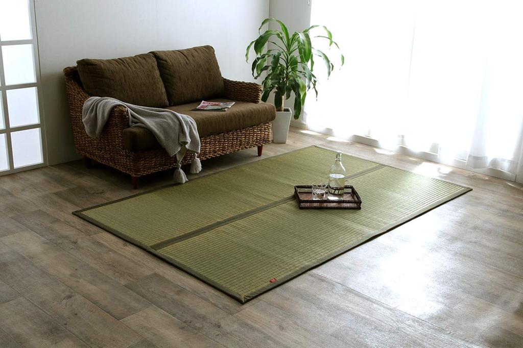 IKEHIKO Rush Grass Rug, Carpet, Rectangular, DX Okinawa Beag, Khaki, Approx. 128 X 200cm, Made In Japan, Backed, Denim Edge #1718760