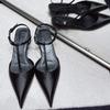 Sexy Pointed Toe Satin Low Heel Sandals Women Elegant Ankle Strap Kitten Heels Women Pumps Summer Fashion Casual Heels Sandals
