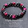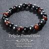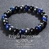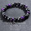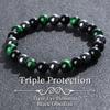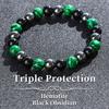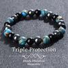 Triple Protection Bracelet, Blue Malachite Black Bile Obsidian Beaded Bracelet, Handmade Stretch Beaded Bracelet