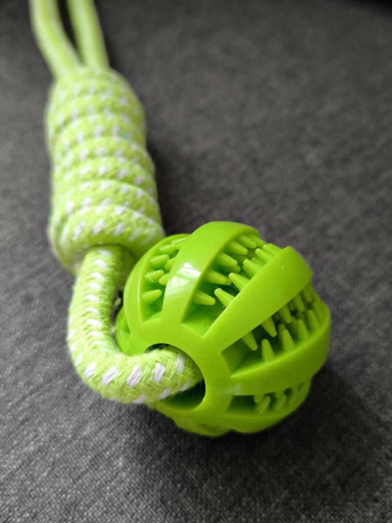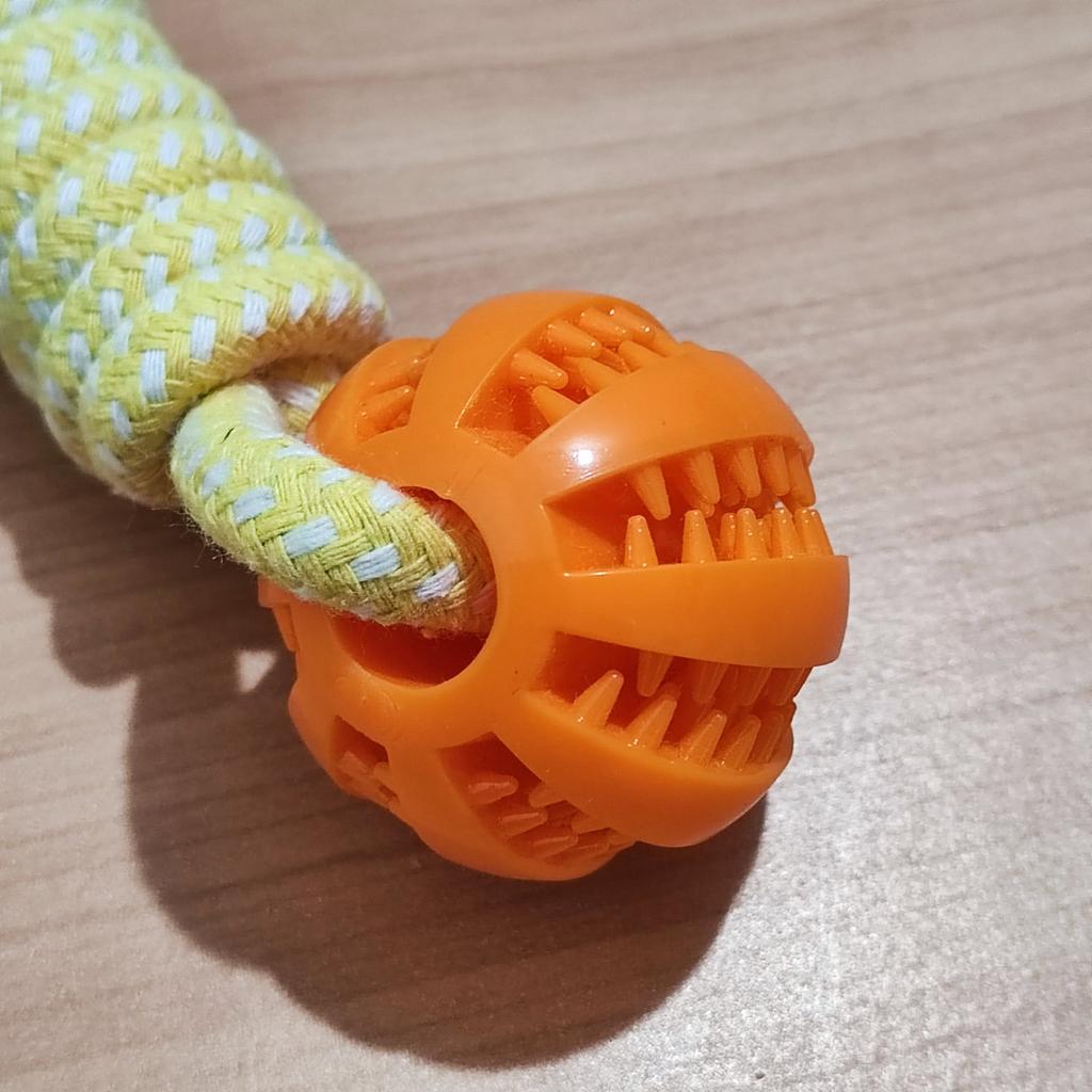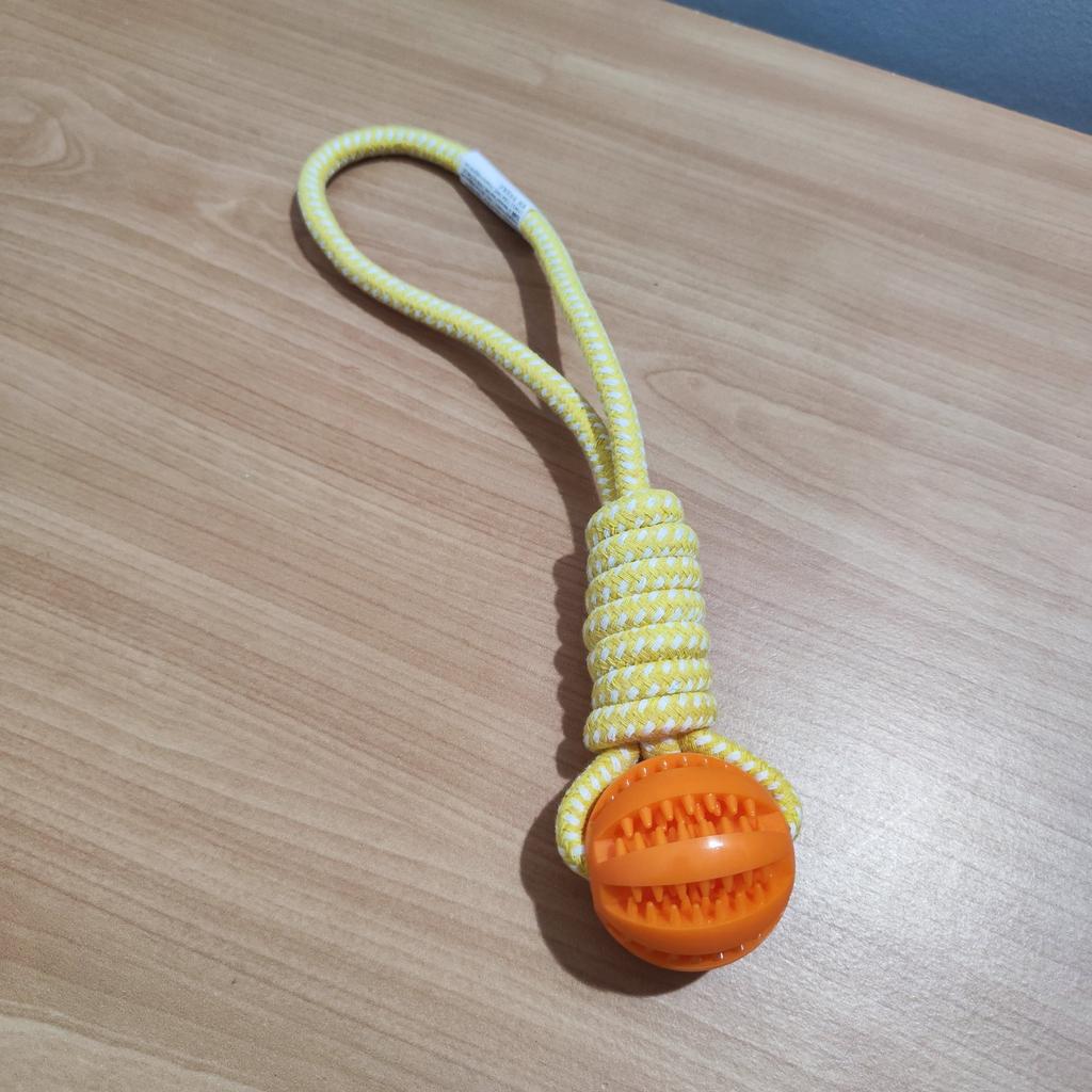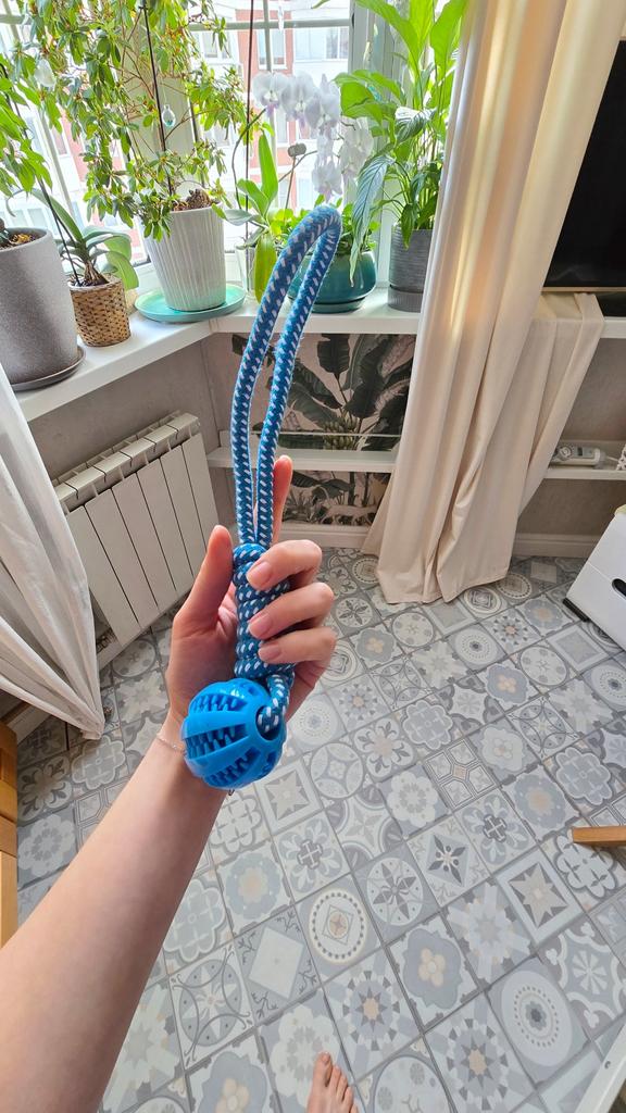 I bought this toy for my dog and he just doesn't stop playing with it! It's a smart interactive toy that combines fun with a challenge – both a ball where you can hide treats and a rope for chewing and cleaning teeth. The material is strong and durable (high-quality cotton rope), and it holds up even with a dog that tends to tear toys quickly. I especially liked that it keeps him occupied for a long time and also helps him clean his teeth while playing. A perfect solution for boredom and a good way to slow down the eating pace. Highly recommended for owners of playful dogs!