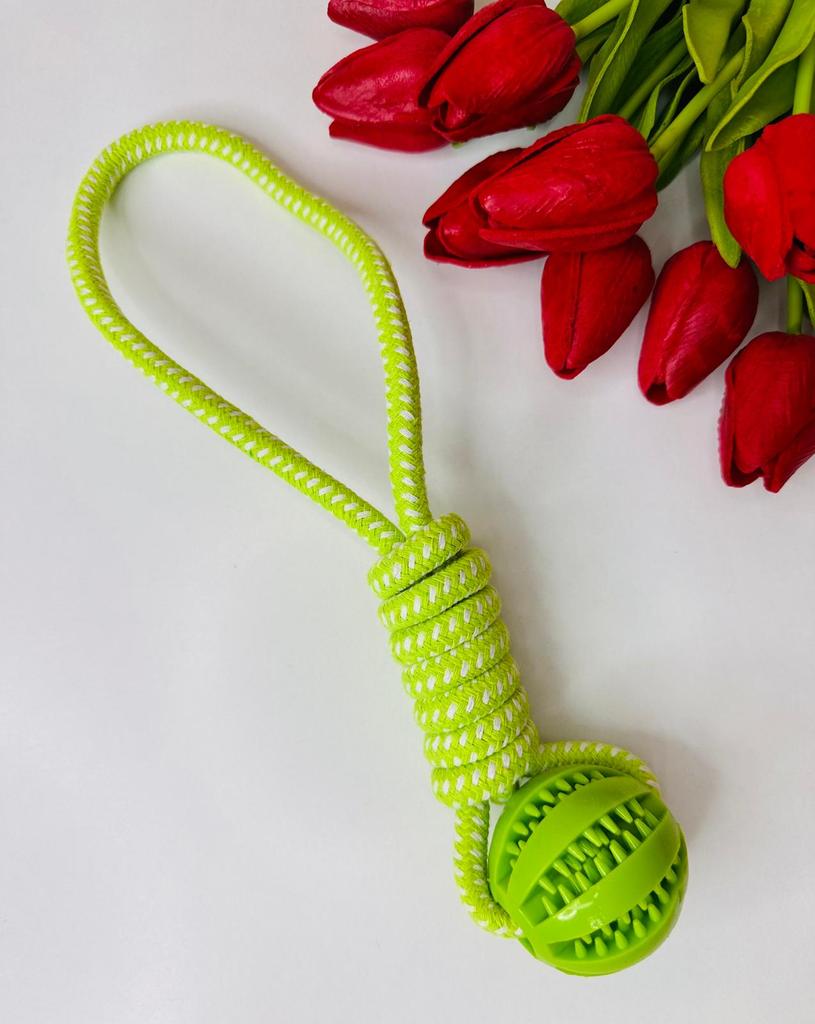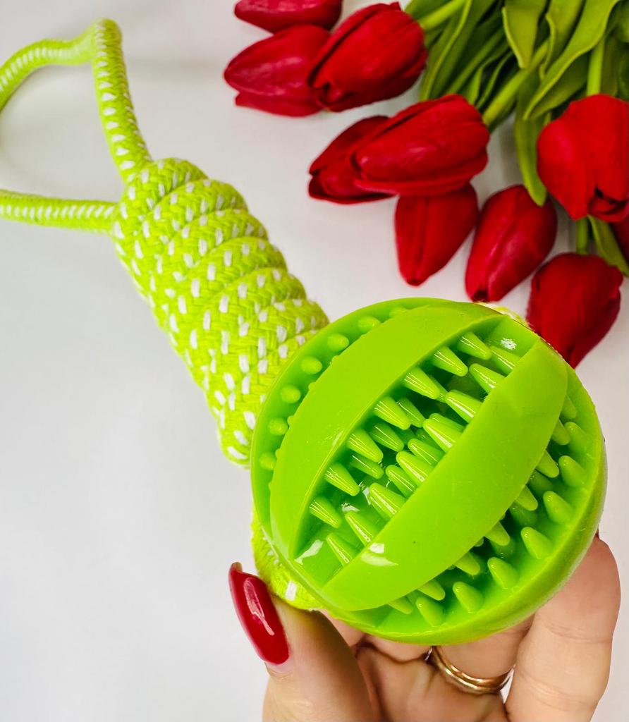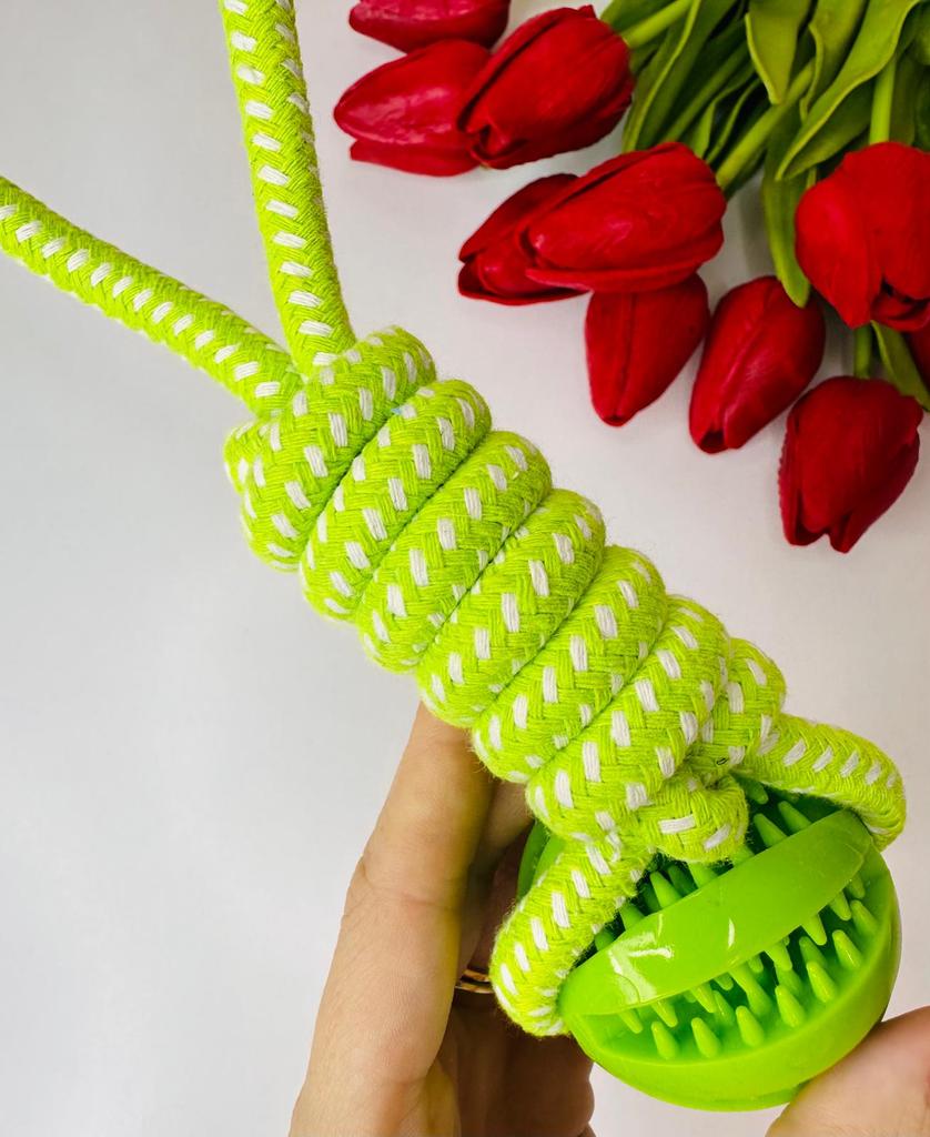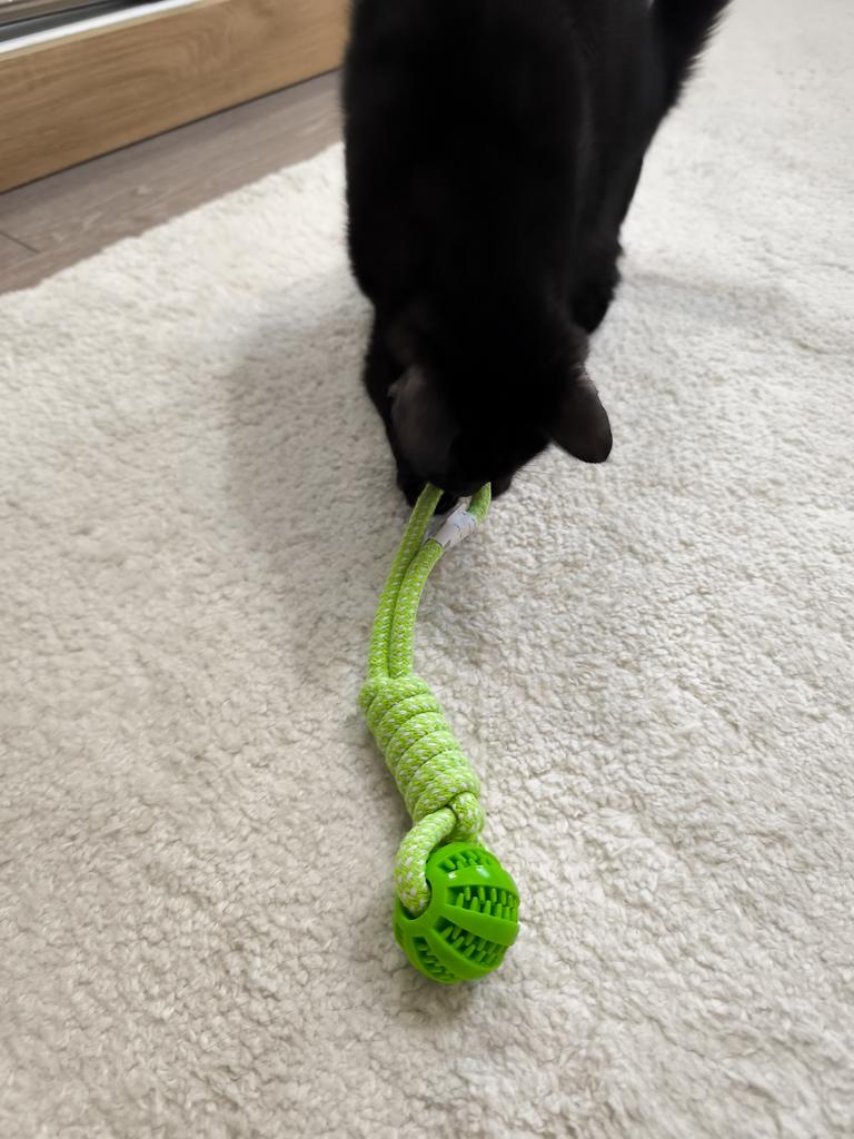 I bought this toy for my dog and he just doesn't stop playing with it! It's a smart interactive toy that combines fun with a challenge – both a ball where you can hide treats and a rope for chewing and cleaning teeth. The material is strong and durable (high-quality cotton rope), and it holds up even with a dog that tends to tear toys quickly. I especially liked that it keeps him occupied for a long time and also helps him clean his teeth while playing. A perfect solution for boredom and a good way to slow down the eating pace. Highly recommended for owners of playful dogs!