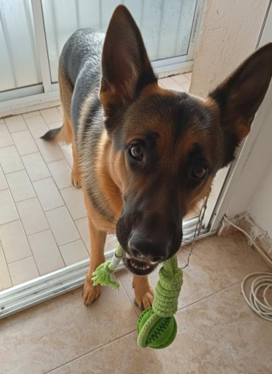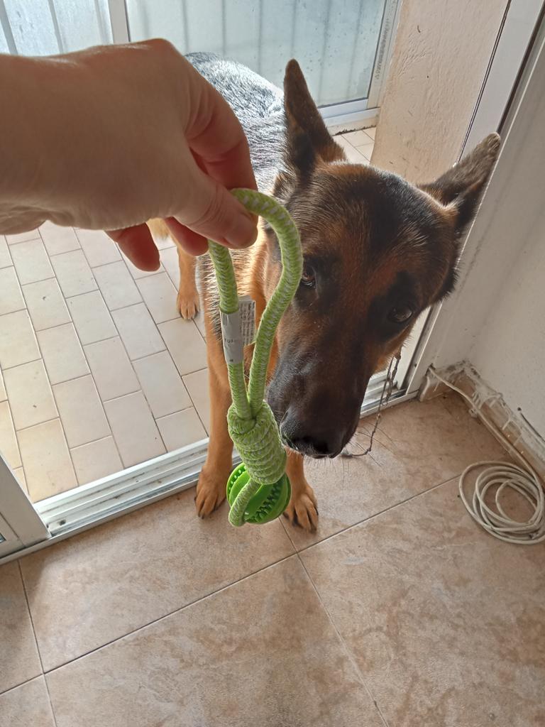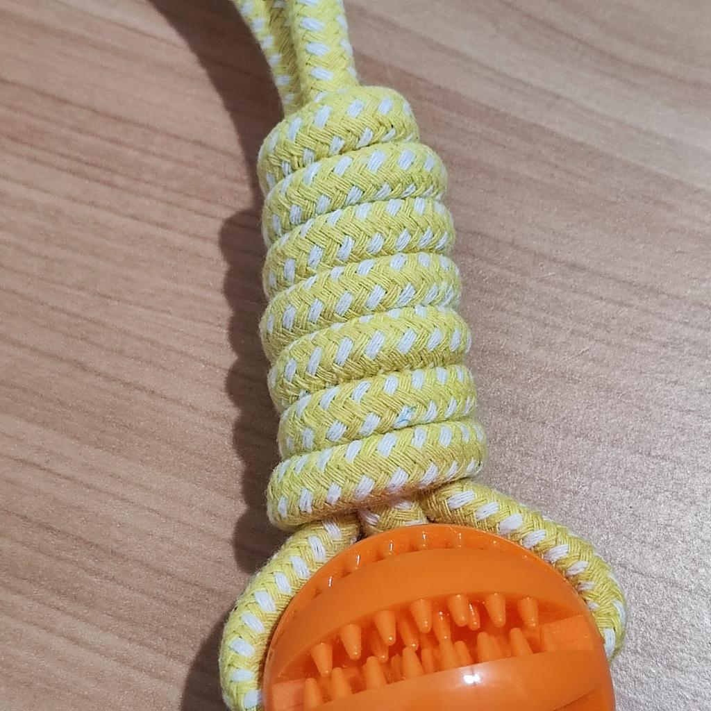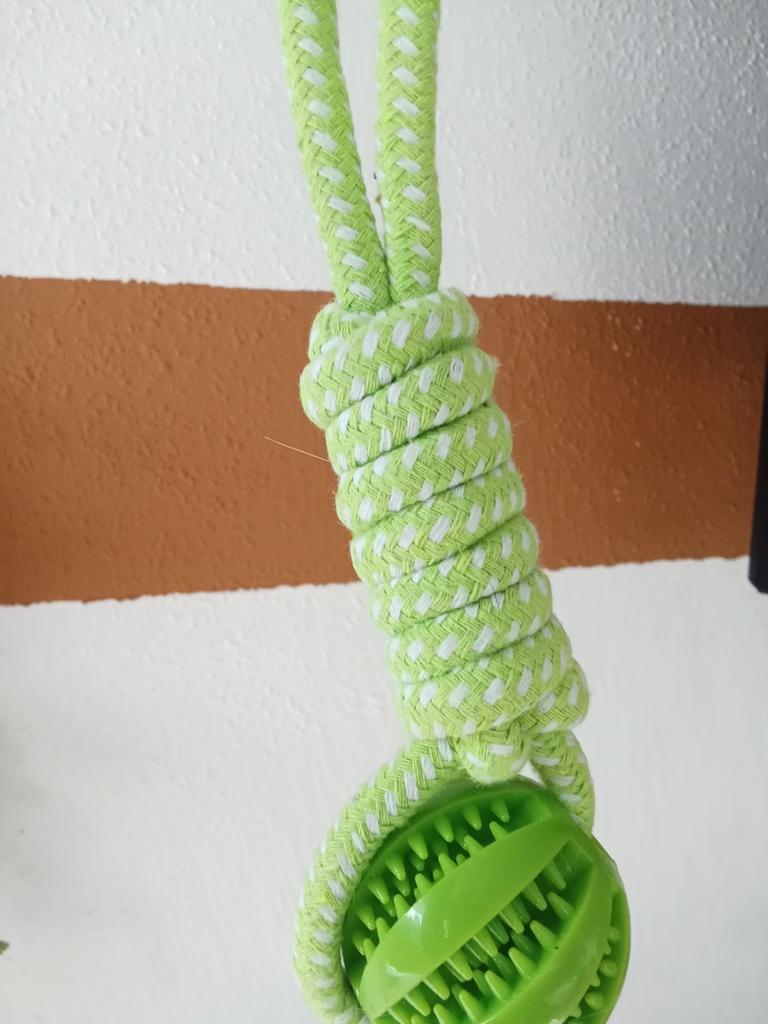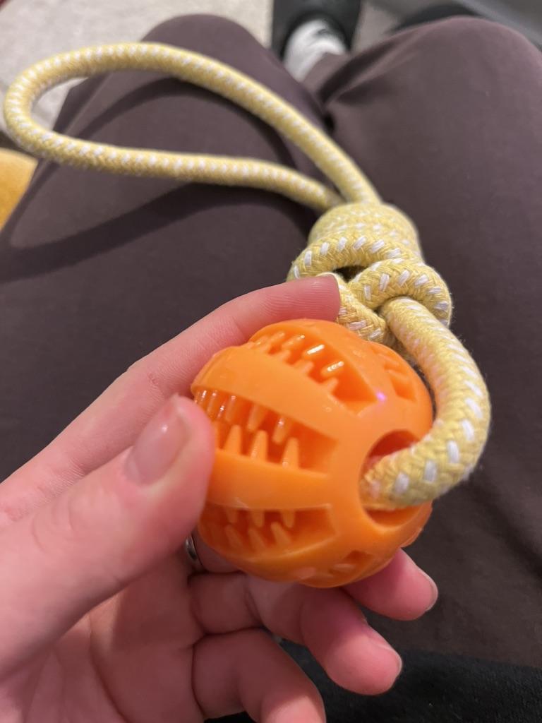My dog 🐕 loved it 🤩 He's in love 🥰 with his toy 😍 It has everything a dog 🐕 wants rope and ball ⚾ Besides 🥎 ball is one of those that you can put Prize inside 👍 special for the teeth fantastic 🥰 Size is great 🥰 Extraordinary quality 💯 100% recommended ✅ Excellent price quality 🤑 Correct packaging 📦 Fast shipping ✈️