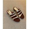 Sheepskin Version~ New Gentle One-word Shoes Women's Summer Versatile Commuting Thick-soled Leather Cool Slippers