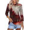 Women's Fashion Casual Lapel Short 3/4 Sleeve Halloween Print Shirt Women's Button Up Tops