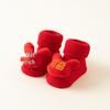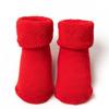 Newborn Red Non-slip Plush Socks for Autumn/Winter - Warm Terry Christmas Floor Socks for Babies and Toddlers.