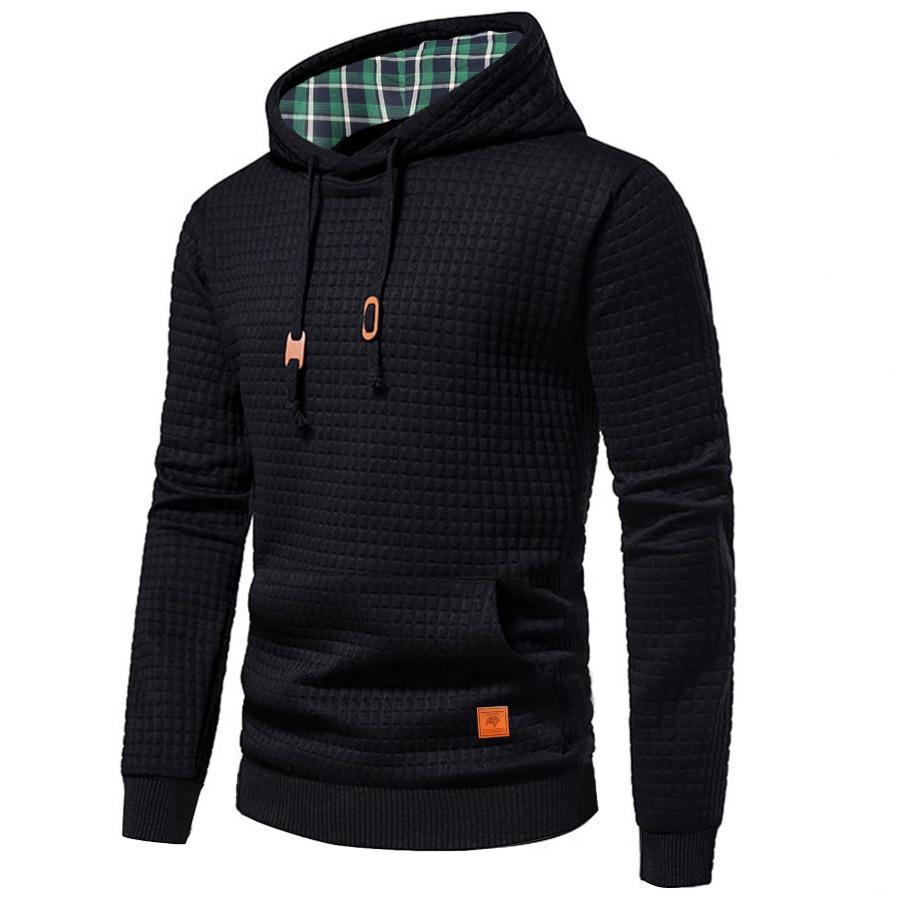 New Men's European-Size Plaid Jacquard Pullover Hoodie (2025)