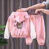 This adorable two-piece set is perfect for keeping little ones warm and stylish during the cooler months. Designed for both boys and girls aged 0-4, it features a charming cartoon pattern that kids will love. The set includes a top with long sleeves, ensuring ample coverage and warmth. Made from soft, high-quality cotton material, this outfit provides excellent comfort for your child's sensitive skin. With its fleece lining, the set offers extra coziness, making it an ideal choice for autumn and winter wear.