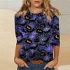 Women's Fashion Casual Round Neck Printed 3/4 T-shirt Top