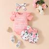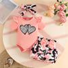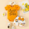 Dress your little one in style and comfort with this adorable Baby Girl Summer Romper & Shorts Set. The outfit features a charming top adorned with playful letter motifs and comes with matching belted flower-patterned shorts. Designed with short sleeves, it is perfect for warmer days, ensuring your baby stays cool and comfortable. Crafted from soft, knitted material, this set offers both quality and a delightful design, making it a wonderful addition to your baby's summer wardrobe.