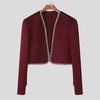 INCERUN Men Long Sleeve Open Front Stitching Short Crop Tops Shirts