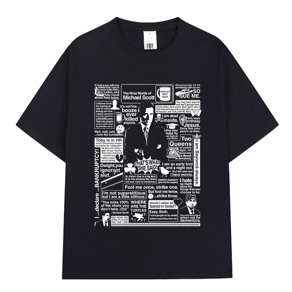 The Wise Words of Michael Scott Homage The Office T-shirt Tv Series Dwight Schrute Jim Halpert Short Sleeve Oversized T-Shirts