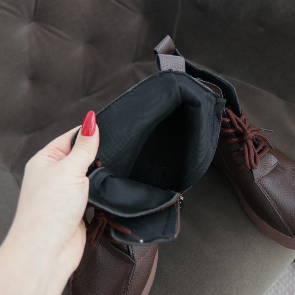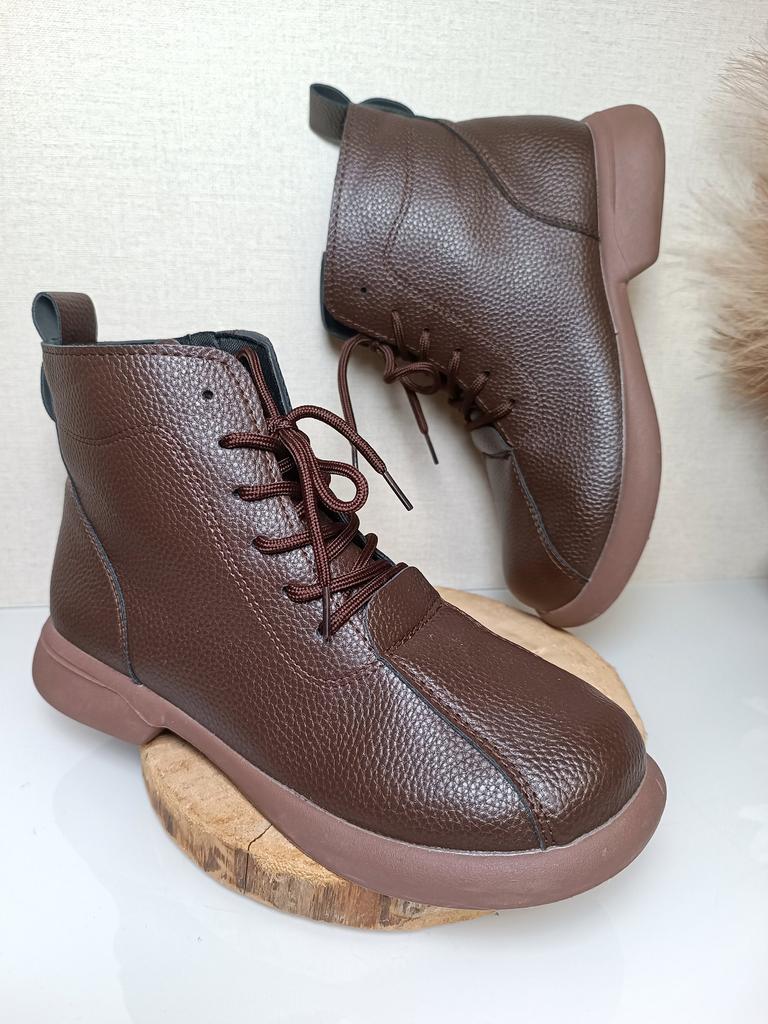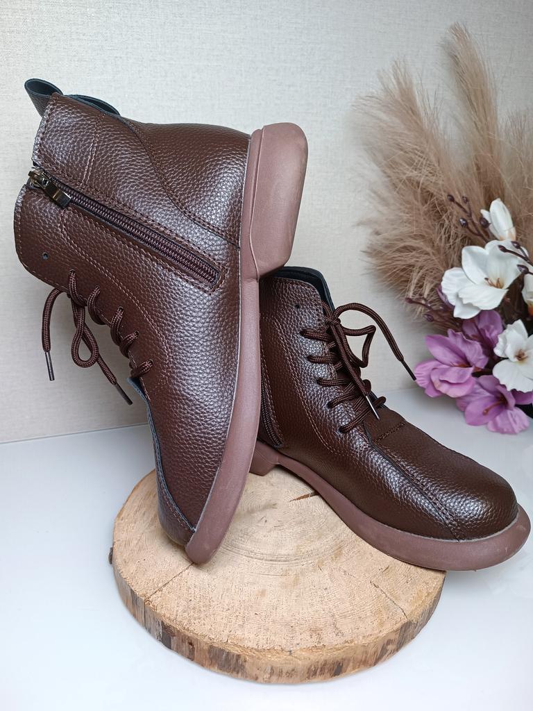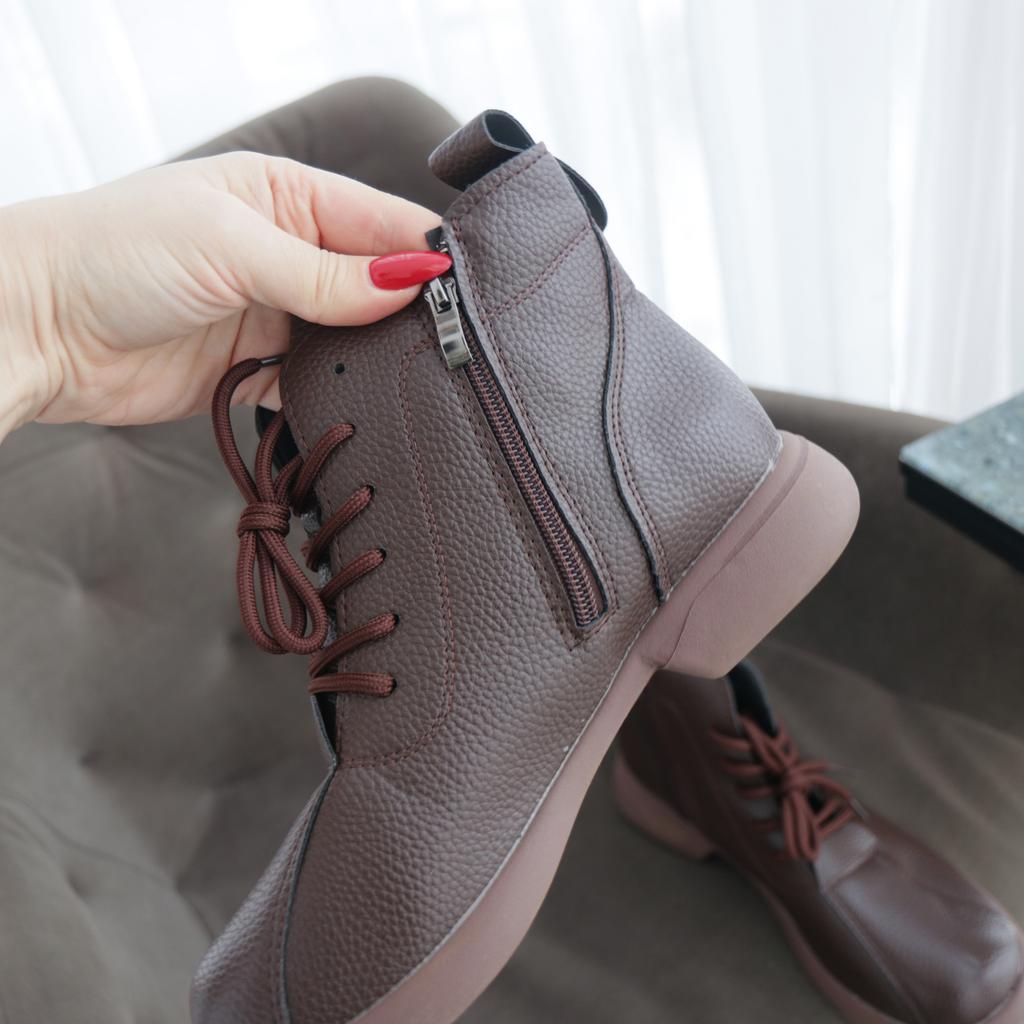 Women's boots. Boots are interesting, comfortable. Eco-leather is soft, they are comfortable to walk in, nothing rubs, nothing presses. Lace-up, side zip. Suitable for wide feet. For a foot of 245 cm, I took size 39. Regarding quality: a little glue is visible at the seam. There is also a choice in black and different sizes.