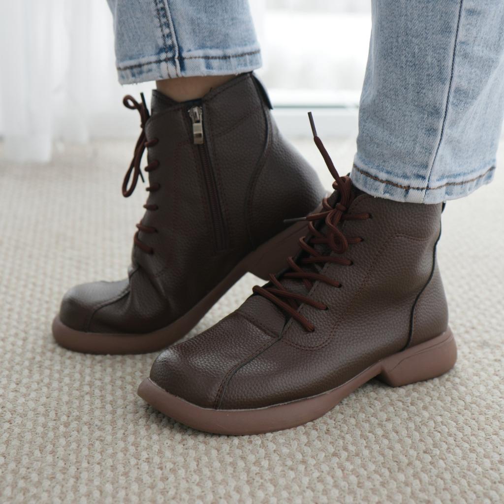 🌺Booties. 🌺Size range : 35-40. 🌺Two colors to choose from. 🌺The booties are made neatly of artificial leather, suitable for spring/autumn. They can be adjusted for foot width thanks to the laces in front, and close with a side zipper.. 🌺The boots are very comfortable, your feet don't get tired in them. 🌺For a foot of 24 cm, size 39 fit. 🌺The quality is excellent, everything is neat.👍😘😘😘