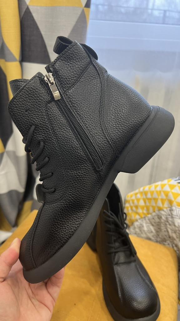 Ankle boots spring/autumn Cute, comfortable, there is a zipper on the side. Size 40 for a 25 cm foot is excellent Made neatly, no extraneous odor. Eco-leather is soft, but the heel and toe are reinforced and hold their shape well.. Looks very good on legs. I recommend 🤗