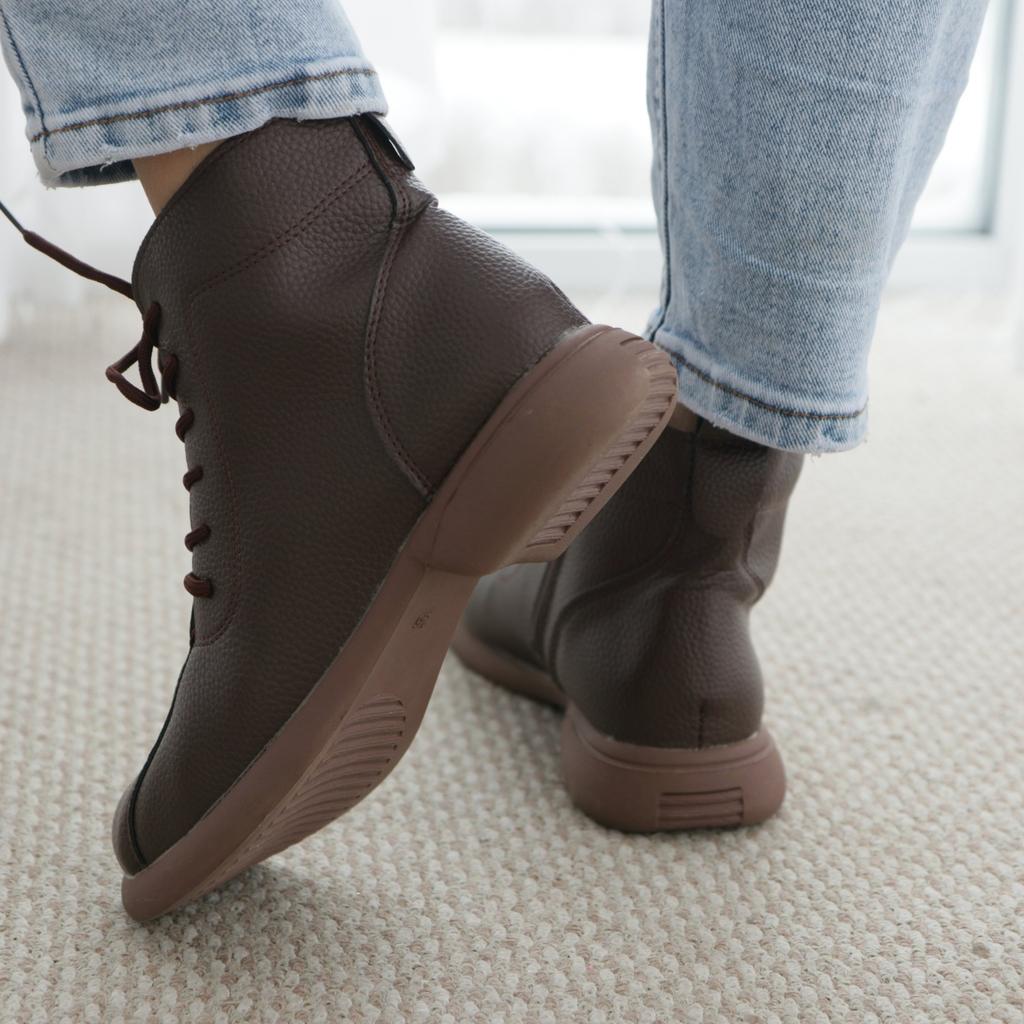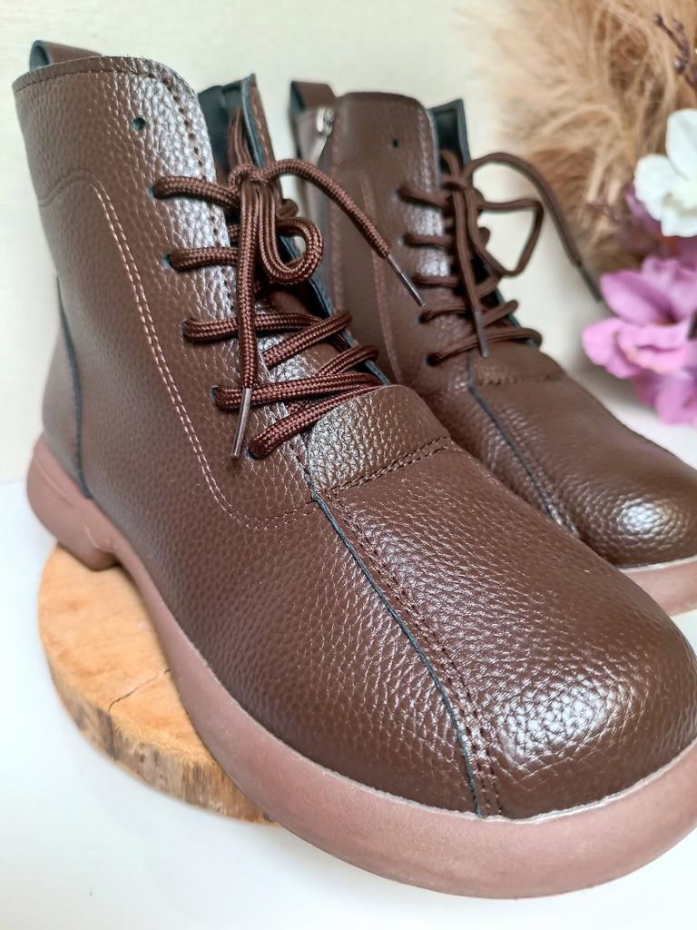 Women's boots. Two colors to choose from. Size range from 35 to 40. For a foot length of 24.5 cm, a problem foot with a bunion, size 40 was ordered, they fit perfectly. Sewn qualitatively, fasten with a zipper and there are laces with which you can adjust the boots to the volume of the leg.. Eco leather is soft, with reinforcement in the toe and heel areas. Look neat on the leg. Suitable for the off-season. Arrived well packaged without any foreign smell.. I recommend to buy.
