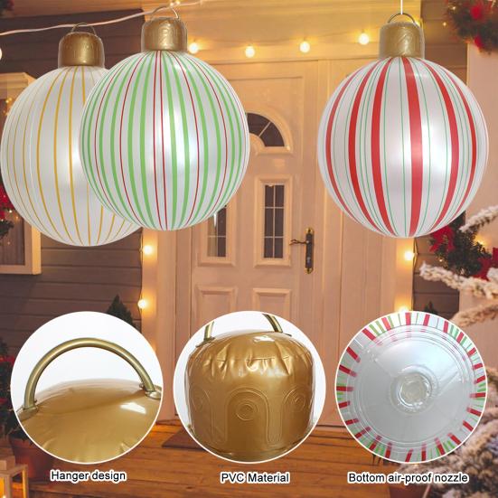 16" Giant Inflatable Christmas Ball Ornaments Large PVC Blow Ball Decorations for Indoor Outdoor Yard Lawn Porch Decor