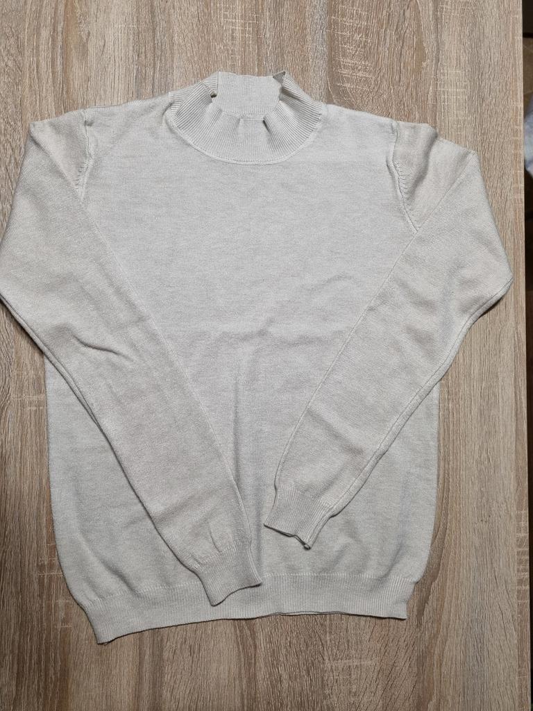 The sweater is not bad for the price, the sleeves are narrow, the size fit.