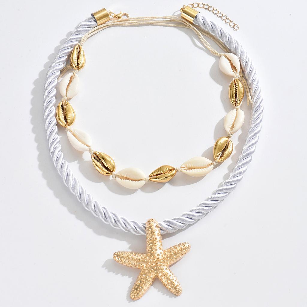 Statement Starfish Necklace Shell Pendant Boho Beach Jewelry Summer Collar Chain