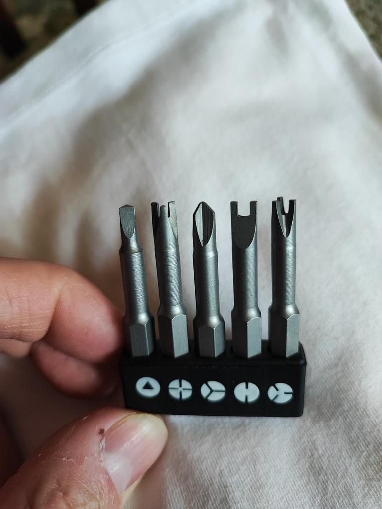 ❤️👍Bought a set of non-standard bits for a screwdriver The set includes 5 non-standard bits that are rarely found in regular sets. I want to immediately note the quality: the metal is durable, the bits hold well in the screwdriver chuck, do not strip, and do not deform during operation.. Previously, I encountered fasteners of non-standard shapes that could not be unscrewed with regular bits. With these bits, such tasks are solved easily and without extra effort. It's very convenient that now you don't need to look for special bits separately.. The set is ideal for repairing equipment and other household tasks. Overall, I am very satisfied with the purchase: the set is high-quality, practical, and versatile. I definitely recommend it to those who are looking for reliable bits for different types of screws and non-standard fasteners.