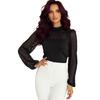 US Shiying Pure Color Mesh Patchwork Pullover Shirt Women 2025 Spring & Fall New Arrival Round Neck Long Sleeve Top Women