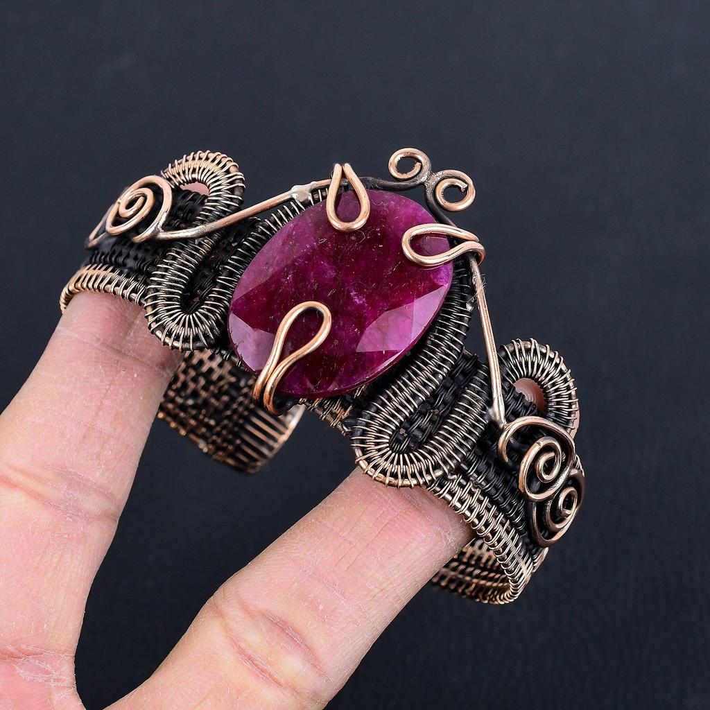 Ruby Bangle Gemstone Jewelry, 999 Copper Wire Wrapped Handmade Bangle, Latest Design Cuff Jewelry