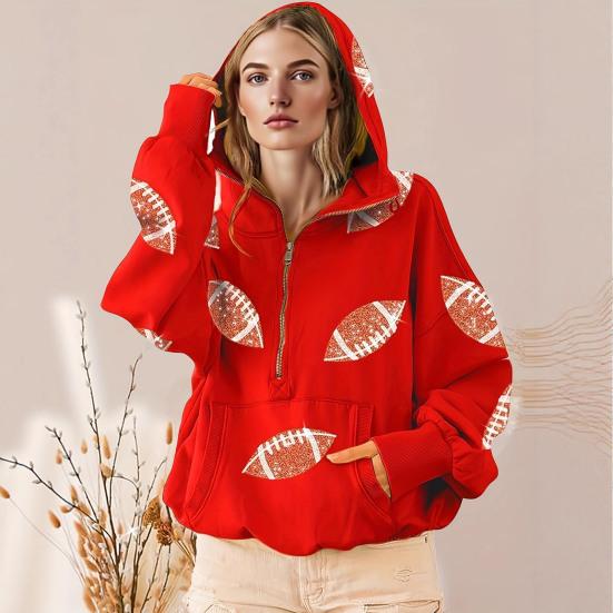 Stay stylish and cozy with this Women's Sweatshirt. Crafted from a soft and breathable blend of polyester and spandex, this sweatshirt offers comfort and warmth for everyday wear. The semi-zipper design adds convenience while enhancing the layering effect. Featuring a unique 3D printing design created with advanced technology, this sweatshirt showcases realistic rugby patterns for a fashionable look.