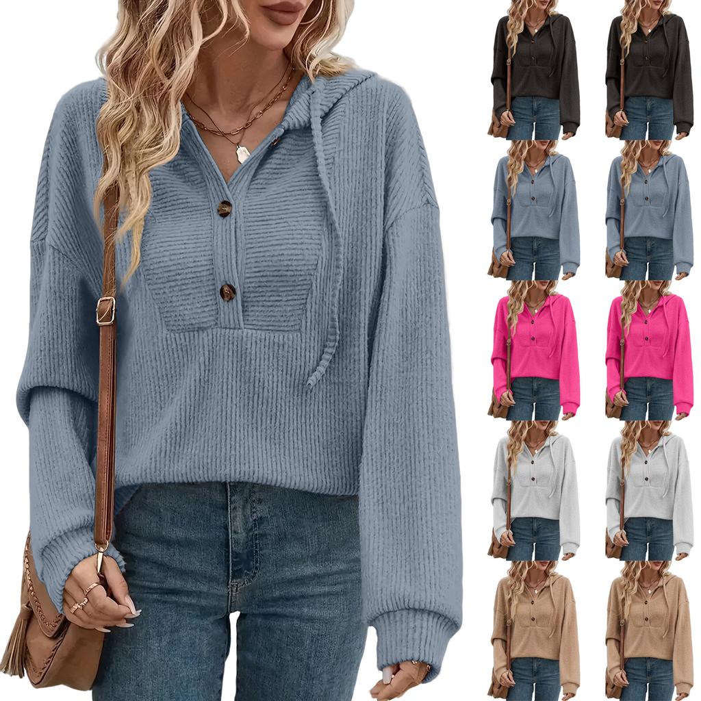 Women's Solid Color Casual Hooded Trench Strip Shoulder Long Sleeved Top Sweatshirt