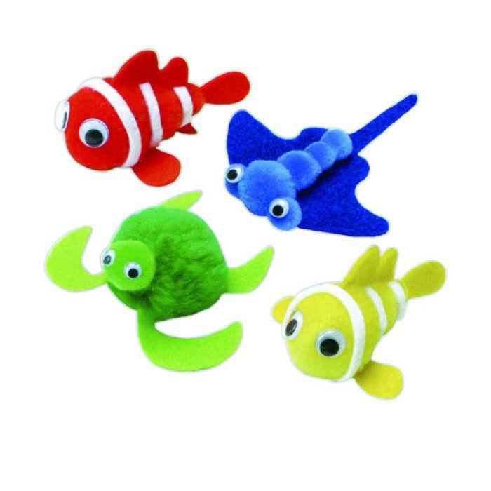 MégaCréa DIY - Kit enfant pompon amis de la mer : 4 personnages à créer soi-même