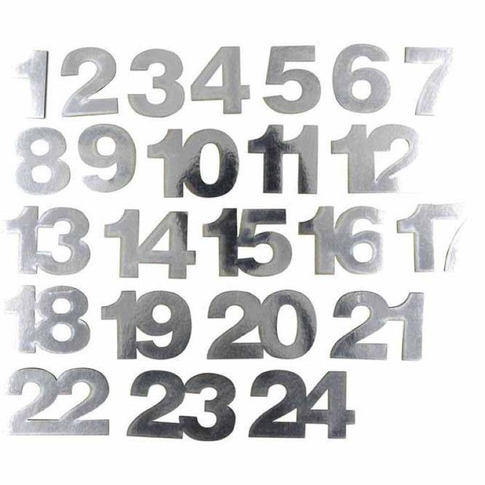 Silver Advent Number Sticker 5 Cm 24 Pieces