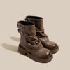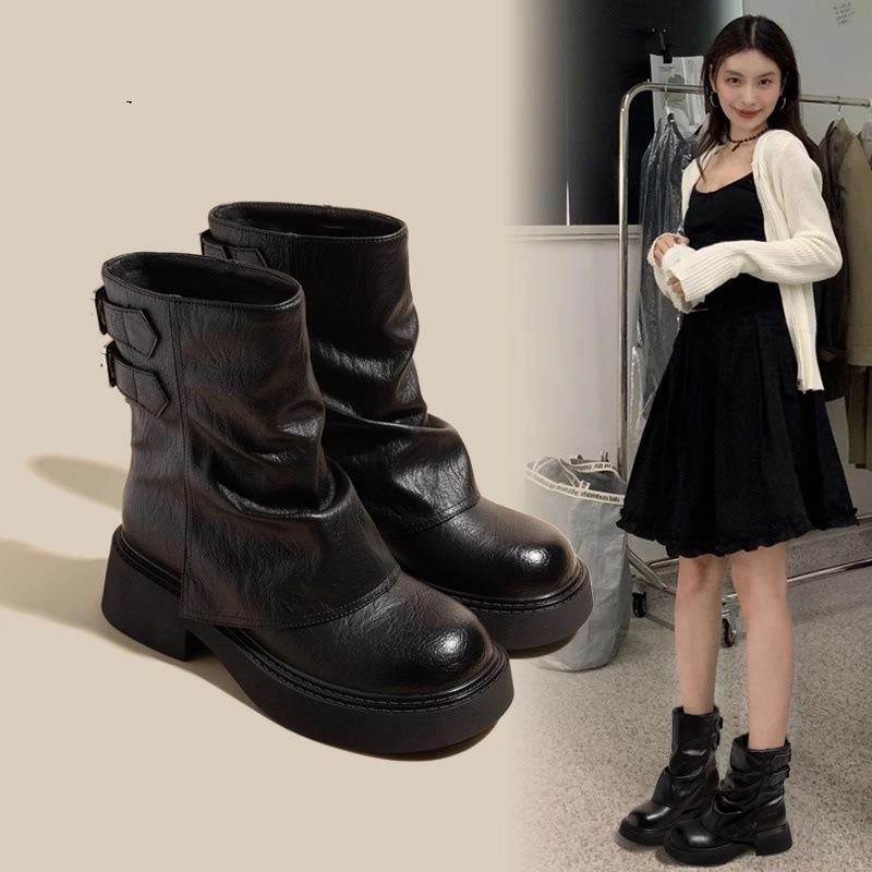 Leather Inner Heightening Martin Boots Women's Retro Short Boots Spring and Autumn Single Boots New Thick-soled Trousers Western Martin Boots