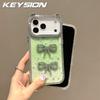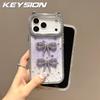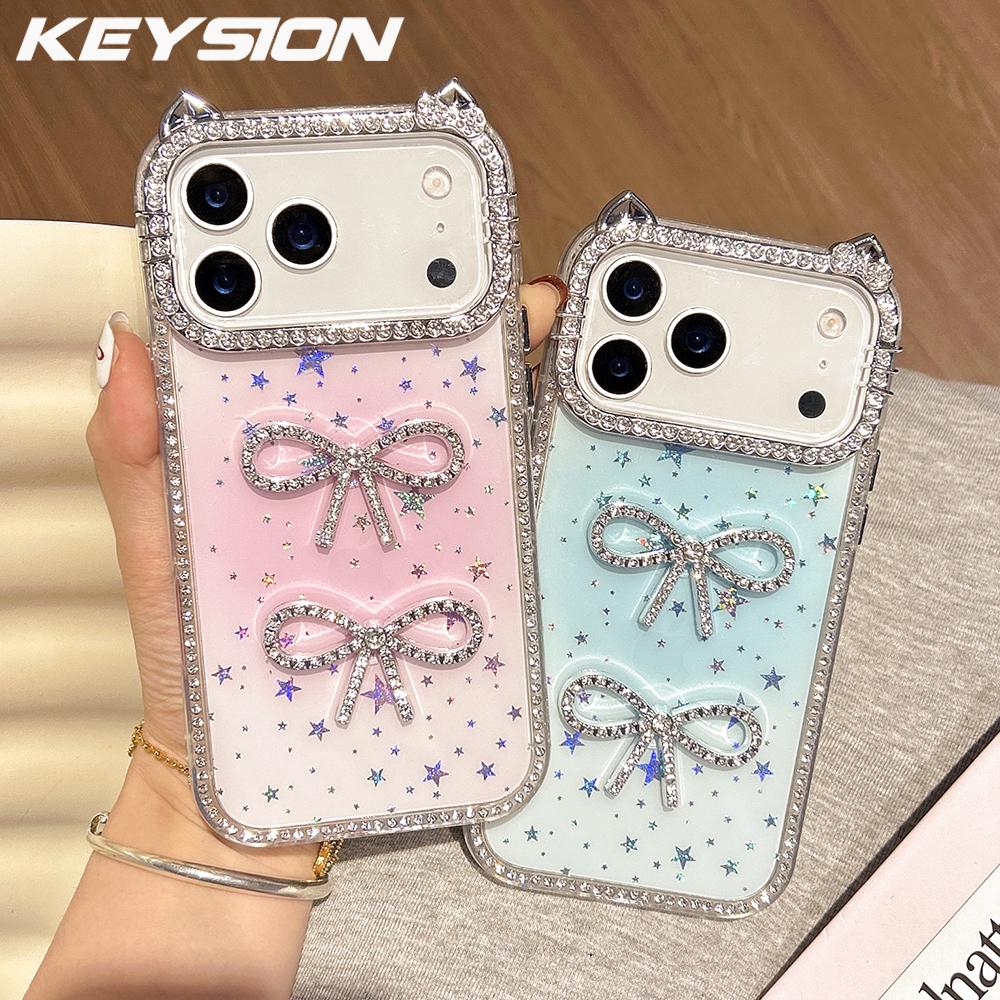 KEYSION Cute 3D Cat Ear Transparent Phone Case for iPhone 17 Pro Max 17 Air 16 Plus 16 Glitter Jewelled Bowknot Shockproof Back Cover