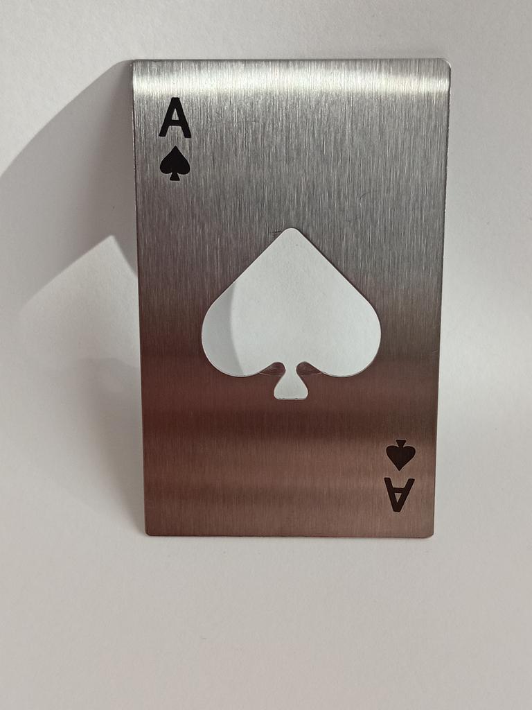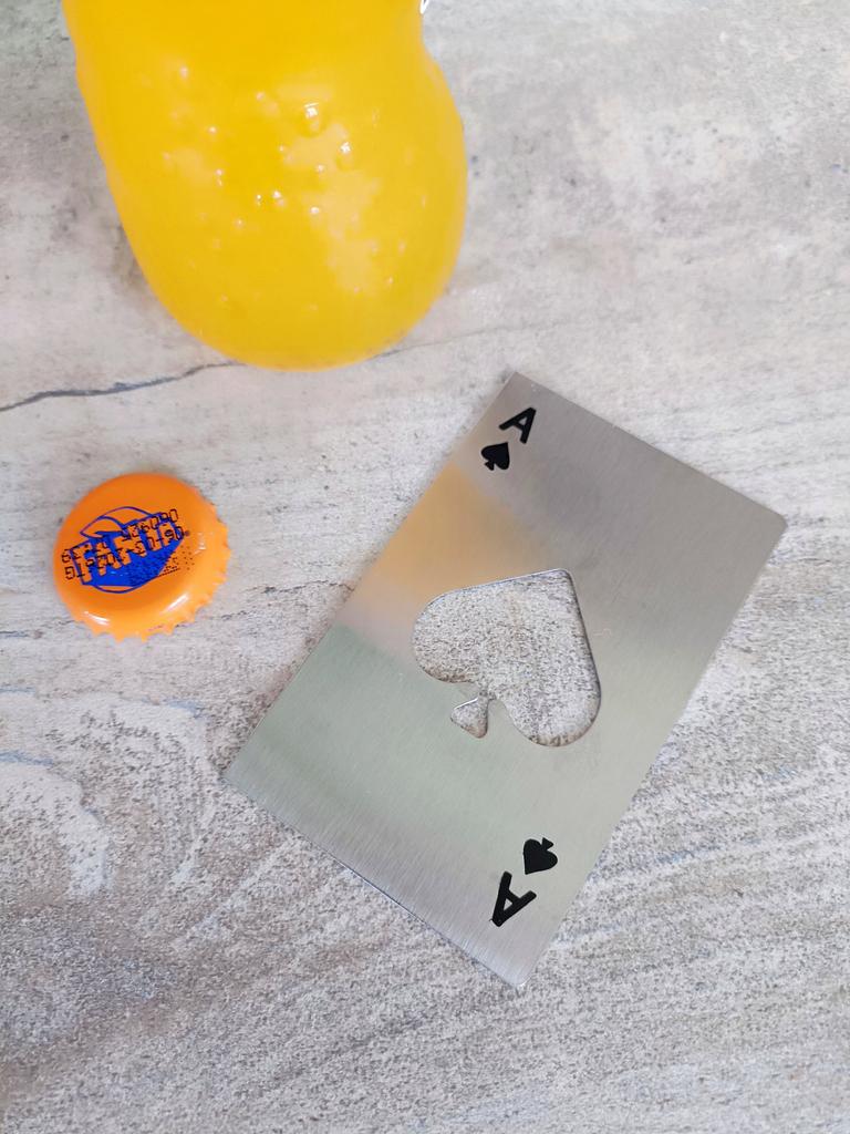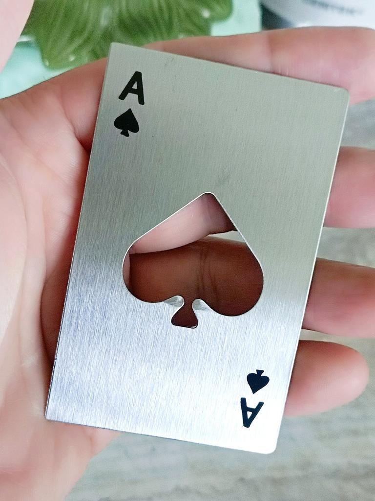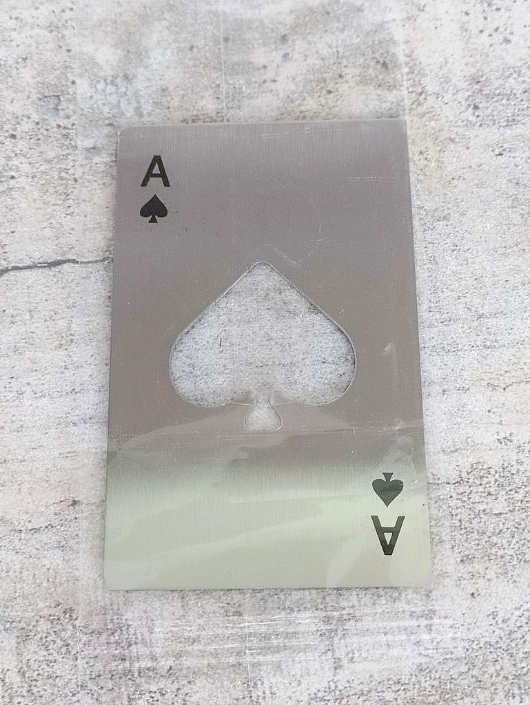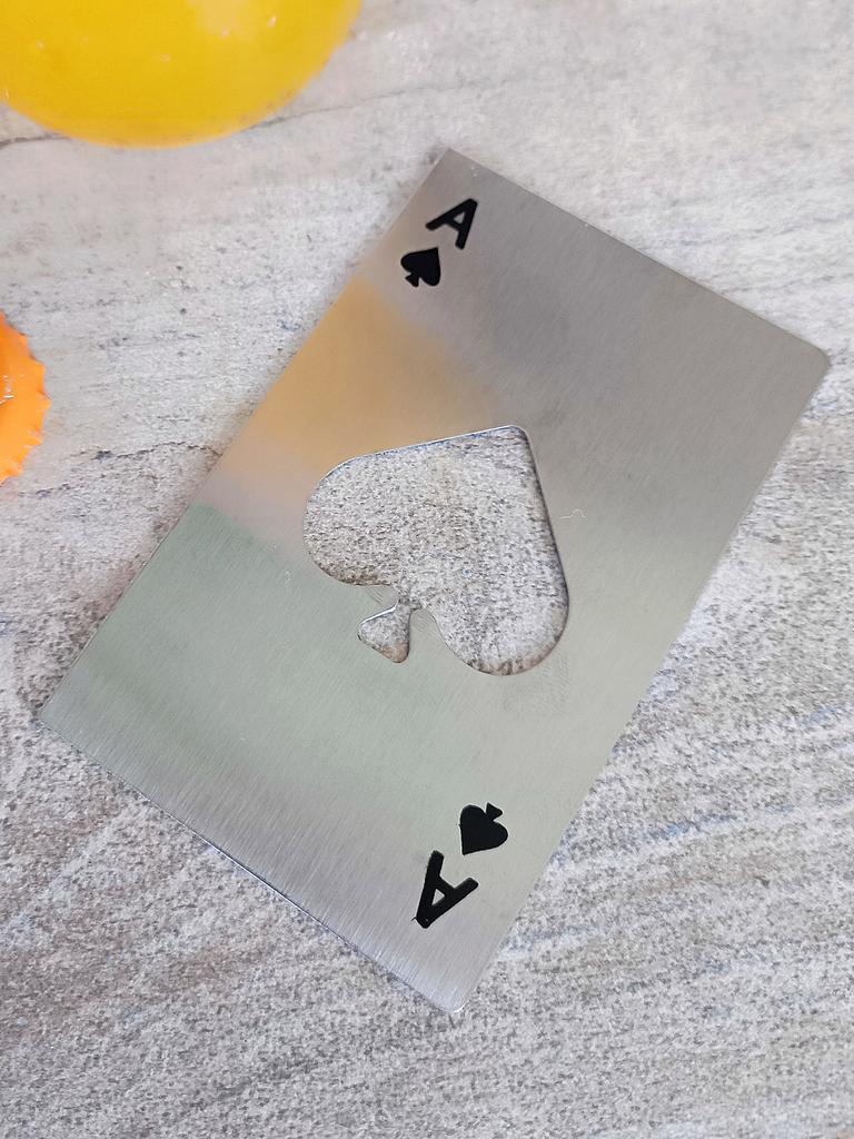 Bottle opener in the shape of a playing card ♠️ Good quality. Metal I recommend 🤗