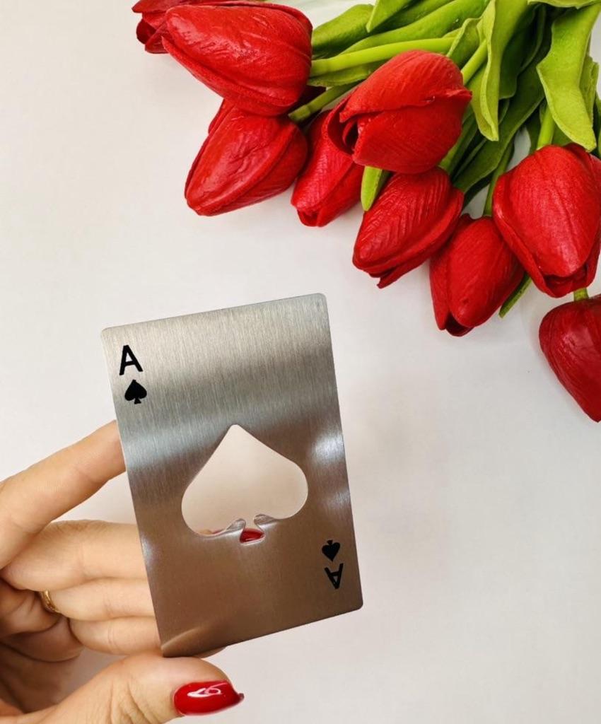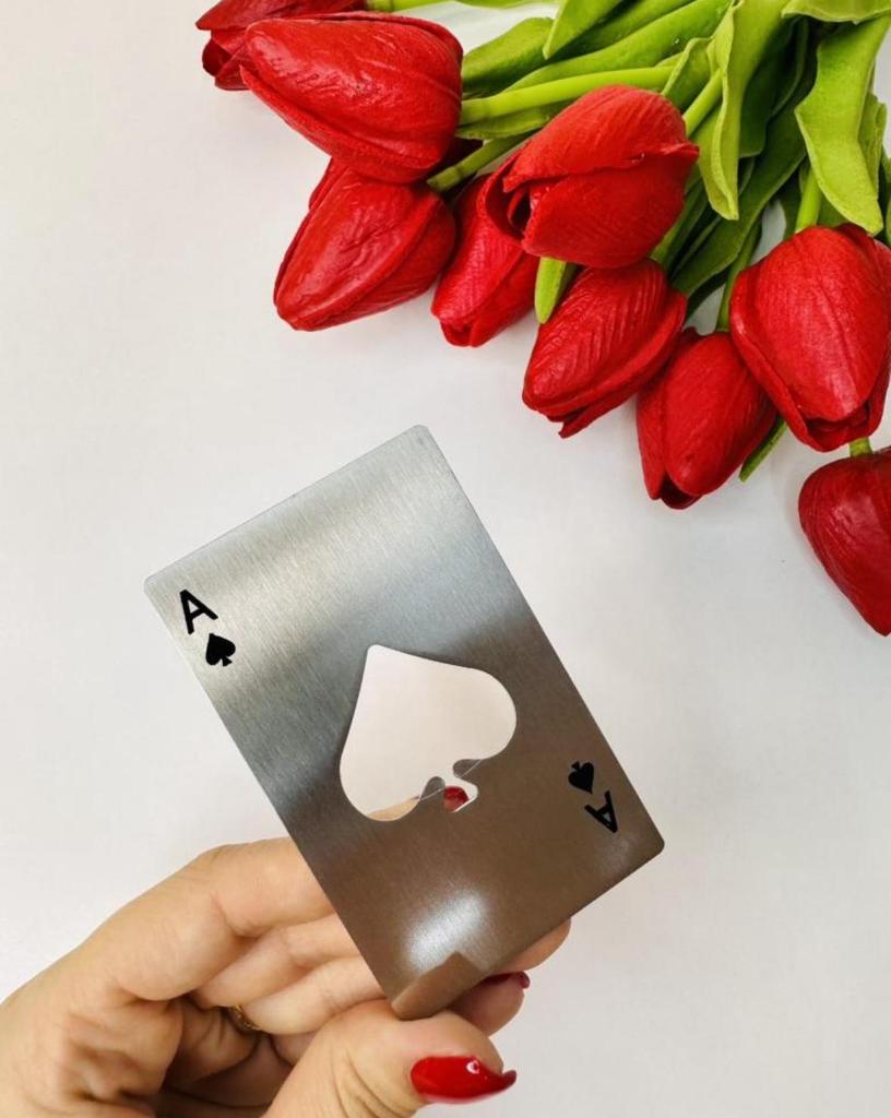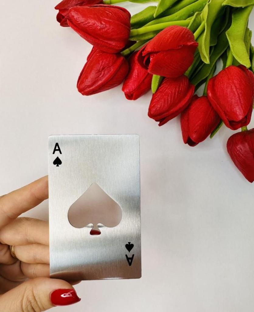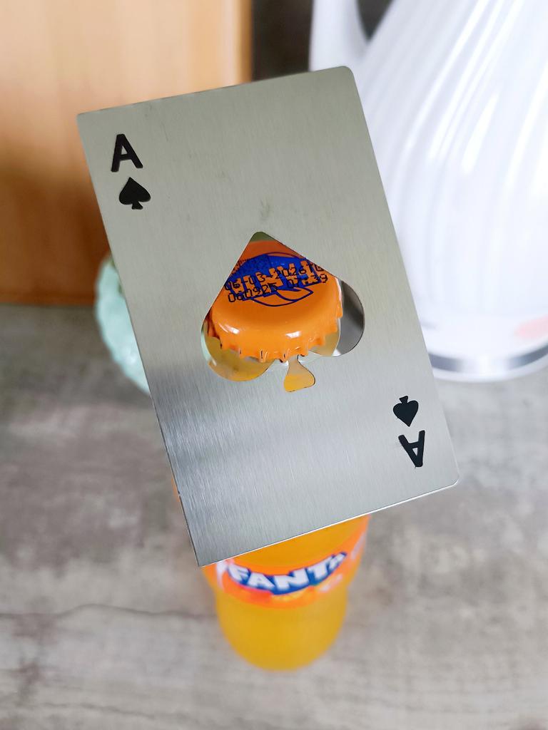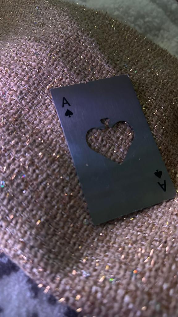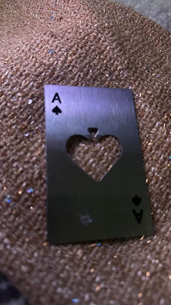 Bottle opener in the shape of a playing card ♠️ Good quality. Metal I recommend 🤗