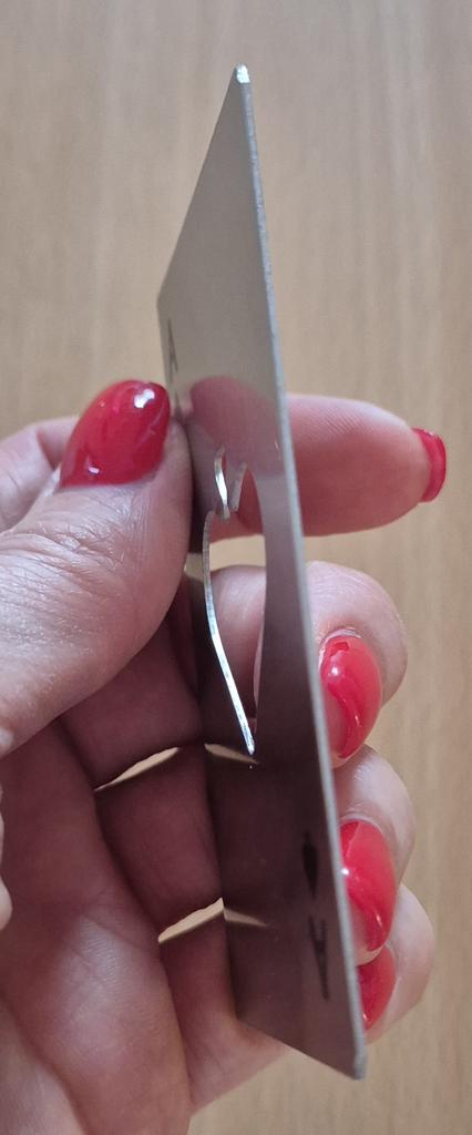 This accessory combines a creative design with robust functionality, ideal for carrying in your wallet or having on hand at social gatherings.. It has the shape and size of a credit card, with the symbol of the Ace of Spades cut out in the center, which serves as the mechanism for opening bottles. Maximum Portability: Thanks to its ultra-slim profile, it can be easily stored in a credit card slot or carried portably in any pocket.