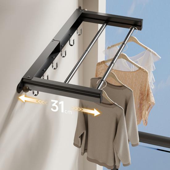 Space-Saving Foldable Design: Featuring an innovative invisible foldable design, this clothes drying rack seamlessly tucks away into the wall, occupying minimal space when not in use, preserving the aesthetic appeal of your living area or balcony.