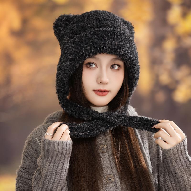 New Cute Little Bear Plush Ear Protection Hat Korean Version of Versatile Plush Thickened Warm Hat Showing Face and Small Cold Proof Hat