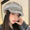 Fall and Winter Plus Velvet Thickened Imitation Mink Beret Korean-style Face Showing Small Octagonal Hat Big Head Windproof and Warm Hat