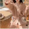 Autumn and Winter Coral Fleece Pajamas for Women, Thick and Warm Flannel Long Home Wear, Fashionable Plus Size Cardigan Set