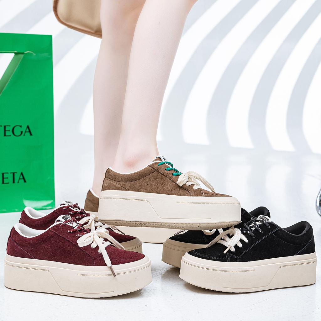 Customized Golden Chestnut Milk Tea Trend Thick Sole 25 Years Spring New Board Shoes Women's Heightening Pair of Shoelaces Casual Shoes Women's Shoes