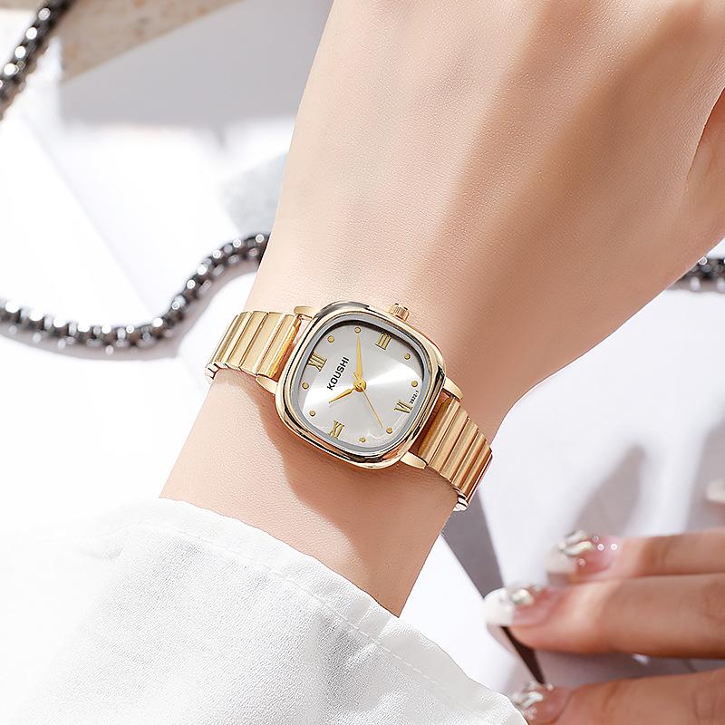 Fashion Simple Hundred Square Round Large Dial Quartz Women's Golden Strap Wristwatch Reloj De Mujer Dropshipping