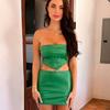 Outfitgirl Fashion Black PU Leather Tube Top Backless Crop Top Sexy Top Hip Split Skirt Suit