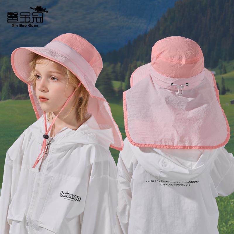 Children's Hats Spring and Summer Outdoor Sun Protection Visor for Boys and Girls Big Brim Shawl Neck Protection Two-color Bucket Hat