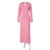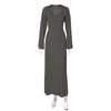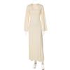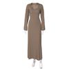 Fashion Fashion U-Collar Waist Trimming Lace Up Dress Rib Minimalist Temperament Pure Color Large Bell Sleeve Classic Dress