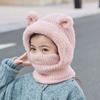 Children's Hat Winter Outdoor Velvet Warm Knitted Wool Hat Cartoon Cute Bear Mask Scarf Integrated Hat
