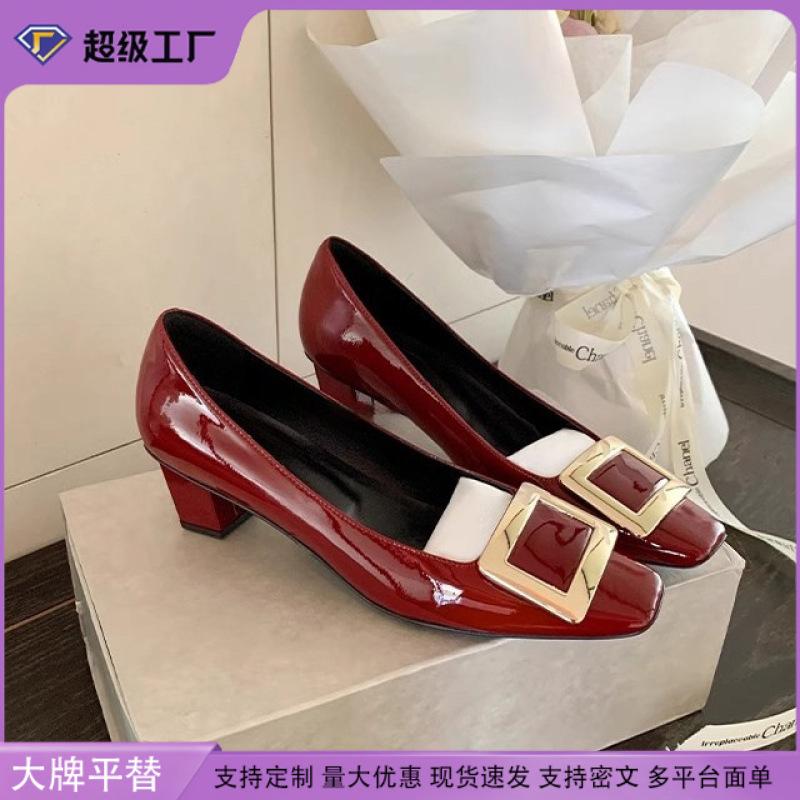 Yuanlitong French High Heels Women's Thick Heels Are Not Tired of Feet 2025 Metal Square Buckle Light Mouth Single Shoes Women's Fashion Versatile