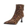 Fashion 2024 Autumn and Winter New Sexy Leopard Print Pointed Suede Thin Heel Short Boots, Slim Boots, Women's High Heels Fashion Boots