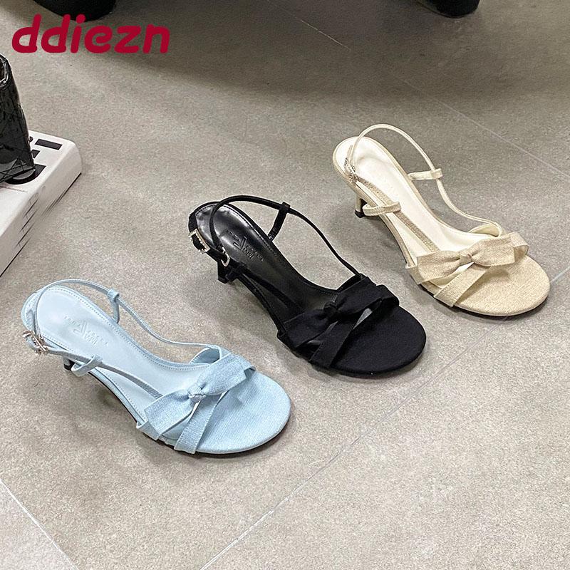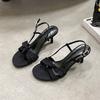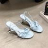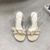 Fashion Fashion Round Toe Elegant Women Heeled Sandals Shoes Shallow Female Butterfly-Knot Ladies Medium Heels Sandals Shoes Pumps